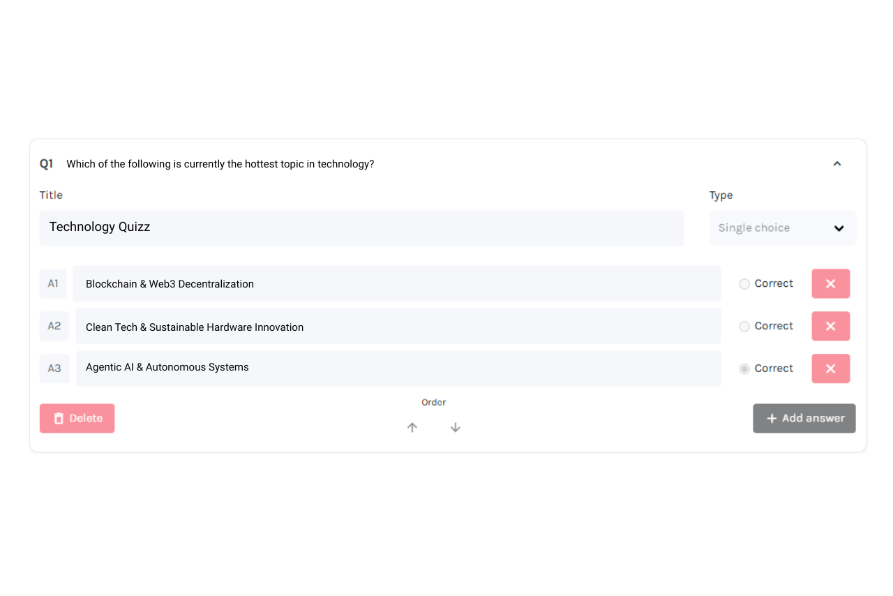 Teste os conhecimentos dos participantes durante o evento e atribua pontos pelas respostas corretas.
